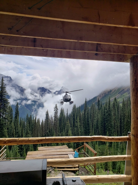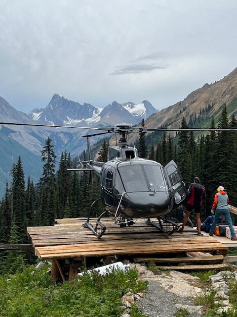 - Be comfortable for a 15-minute ride by helicopter from the staging area outside of Golden through steep mountain terrain to the lodge